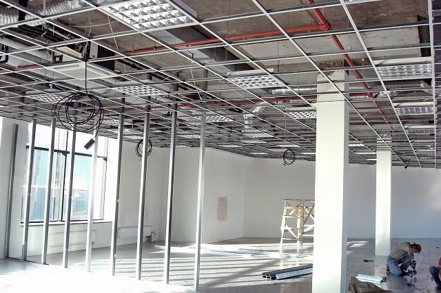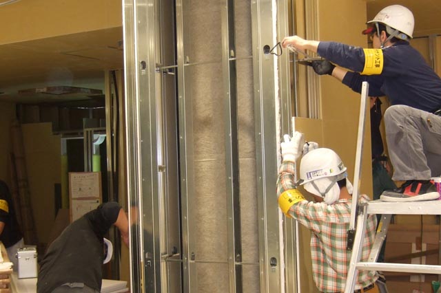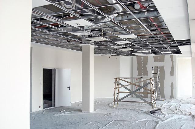 大阪市のオフィスビル高層階のワンフロア全体の原状回復工事および内装工事を行っています。